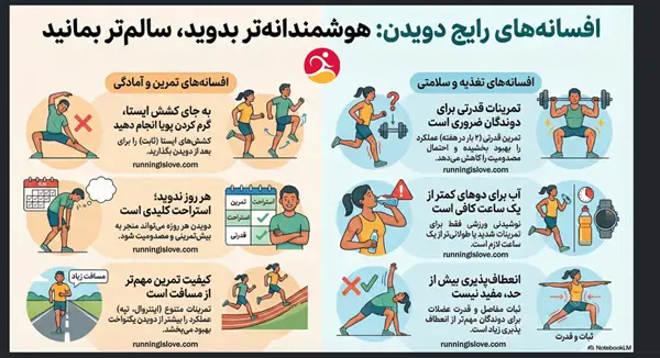 همه ما می‌دانیم که دویدن رشته‌ای چالش‌برانگیز بوده و اگر دونده، اصولی دویدن را شروع نکرده و ادامه ندهد، احتمال مصدومیت خود را بالاتر می‌برد. بجز این موارد، اطلاعات متناقضی درباره بعضی موارد خاص مانند: کشش، تمرینات قدرتی، دویدن پای برهنه و … وجود دارد که باعث سردرگمی دونده‌ها می‌شود. در ادامه قصد داریم به بعضی از این افسانه‌های اشتباه درباره دویدن نگاهی بیاندزیم و این تصورات اشتباه را کنار بگذاریم.